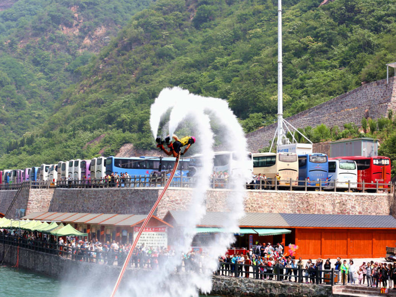 亲水新乐园——龙吟峡,因峡谷内瀑布双叠飞泻,跌落于红岩绝壁之上如龙吟鸣,故而得名。龙吟峡纵深4000多米,动植物种类繁多,被誉为“太行精灵”的猕猴活泼调皮、滑稽可爱,吊桥喧溪、秋千古木,相映成趣。